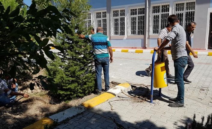 Kütahya’nın Emet ilçesinde Anadolu İmam Hatip Lisesi içerisinde pansiyon yapılacak alanda bulunan ağaçların, nakil edilerek okul önüne dikildiği bildirildi.