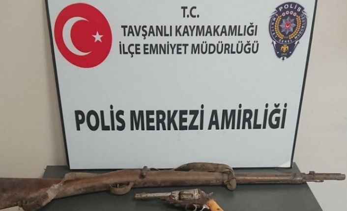 Kütahya’nın Tavşanlı ilçesinde polisin durdurduğu araçta tarihi eser niteliğinde bir tüfek ve silah ele geçirildi.Tavşanlı Otogar’da yapılan kontrollerde 43 BF 994 plakalı araç şüphelenilerek durdurulmuş araçta bulunan Sefa E.(37) ve Özkan Ö. (38) olduğu görülmüş yapılan kaba üst aramasında herhangi bir olumsuzlukla karşılaşılmamış, araçta gözle görünür yerde yapılan aramada tarihi eser olarak değerlendirilen 1 adet tüfek ve 1 adet altı patlar tabanca olduğu tespit edilmiş; şahıslar gerekli işlemler için Polis Merkezi Amirliğine götürüldü.