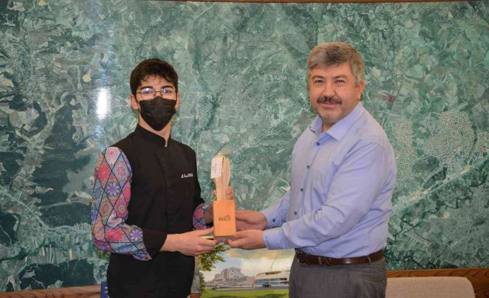 Antalya’da düzenlenen Gastro Antalya Uluslararası Gastronomi Mutfak Şenliği ve İstanbul Mutfak Günleri Yarışmaları’nda şampiyon olan Mustafa Eren Akalan, Gediz Belediye Başkanı Muharrem Akçadurak’ı makamında ziyaret etti.