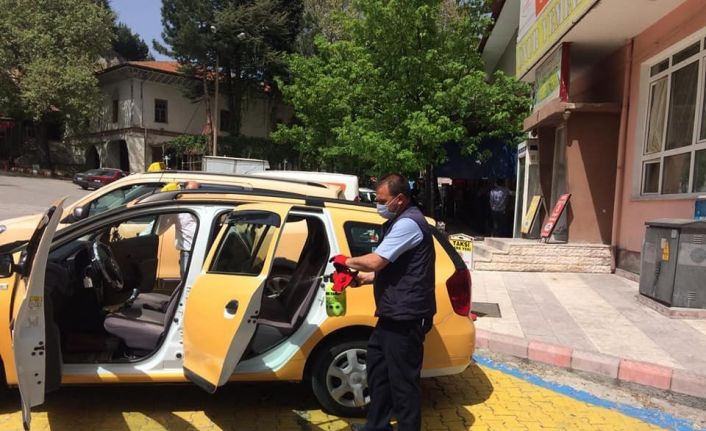 Kütahya’nın Şaphane ilçesinde belediye tarafından ilçede görev yapan tüm taksiler Korona virüs (Covid-19) tedbirleri kapsamında dezenfekte edildi.