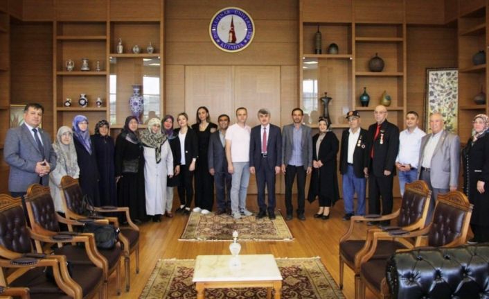 Rektörlük makamında gerçekleşen ziyarette Rektör Kazım Uysal’a, Tavşanlı Meslek Yüksekokulu Müdürü Prof. Dr. İsmet Çelik Eşlik ederken, Tavşanlı Şehit Aileleri ve Gazileri Derneği Başkanı ve aynı zamanda şehit Mehmet Karaduman’ın kardeşi Yusuf Karaduman’a, Başkan Yardımcısı ve aynı zamanda Kıbrıs şehidi Ali Alpaslan’ın kızı Belkıs Alpaslan, Tavşanlı Derbent Köyü şehitlerini temsilen Tahsin Aydoğdu ve ailesi, şehit İsmail Düzgün’ün babası Osman Düzgün ve annesi, şehit Mustafa Kemal Uçar’ın kardeşi Enes Uçar ve yengesi, şehit Cemil Demirayaklı’nın annesi Ayşe Demirayaklı ve yengesi Meryem Demirayaklı, şehit Abdurrahman Altınbay’ın babası İsmail Altınbay ve annesi, Kıbrıs Gazisi Mehmet Ziya Kolukısaoğlu ve 15 Temmuz gazisi Ali Karayiğit eşlik ettiler.
