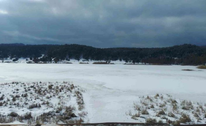 Kütahya’nın Simav ilçesinde bulunan Gölcük Tabiat Parkı’ndaki Krater Göl buz tuttu.