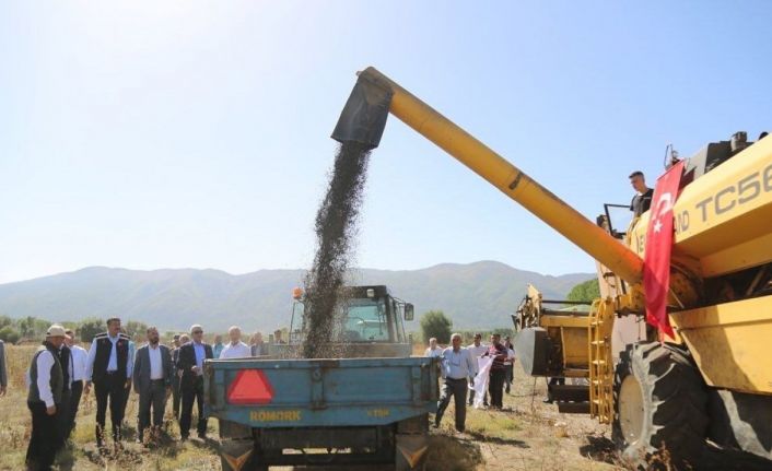 Vali Ali Çelik, Simav Demirci’de tarlada biçerdöverin direksiyonuna geçerek, çiftçilerle beraber ayçiçeği hasadı yaptı.
