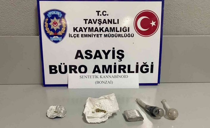 Tavşanlı İlçe Emniyet Müdürlüğü ekiplerince uyuşturucu ve uyarıcı madde ticareti yapan şahıs ve gruplara yönelik yapılan çalışmalar çerçevesinde K.S.(29) ve E.U.(26) isimli şüphelilerin Dedeler Mahallesinde bulunan ikamette yapılan aramada, 2.43 gram bonzai maddesi, 2 adet uyuşturucu içiminde kullanılan payp ve uyuşturucu paketlemeye yarayan alüminyum folyo ele geçirildi.