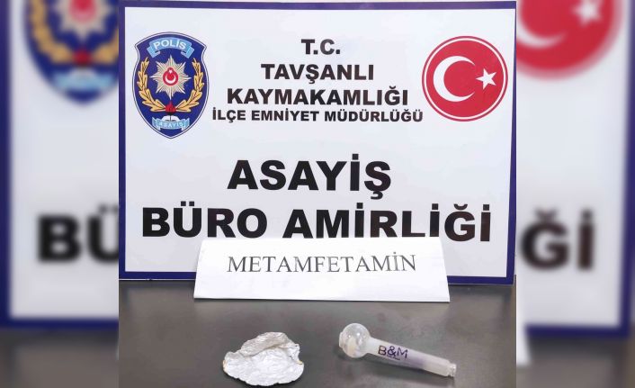 Edinilen bilgiye göre, Tavşanlı ilçesinde uyuşturucu kullanımını önlemek amacıyla yapılan çalışmalar neticesinde İlçe Emniyet Müdürlüğü ekiplerince Ulucami Mahallesi Yenidoğan Caddesi üzerinde şüpheli şahıslar üzerinde yapılan kontrollerde M.N.Y. isimli şahsın üzerinden uyuşturucu madde içiminde kullanılan içinde metamfetamin kalıntısı olan pipe ve jelatine sarılı vaziyette 0.53 gram metamfetamin maddesi ele geçirildi.