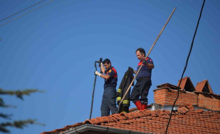Kütahya’nın Tavşanlı ilçesinde 2 katlı bir evin çatısında çıkan yangın korkuttu.