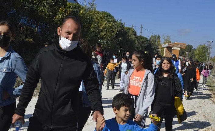 Yaklaşık 3 kilometre yürüyüş yapan gruba daha sonra simit ve meyve suyu ikramında bulunuldu.