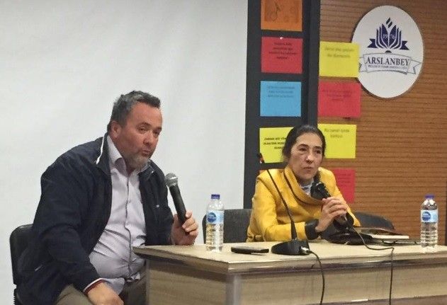 Gazeteci Fatma Selma Kocabaş Aydın ve Tuna İşleyen öğrencilerle Hayme Ana Mesleki ve Teknik Anadolu Lisesi Konferans Salonu’nda bir araya gelerek gazetecilik hakkında söyleşi gerçekleştirdiler.