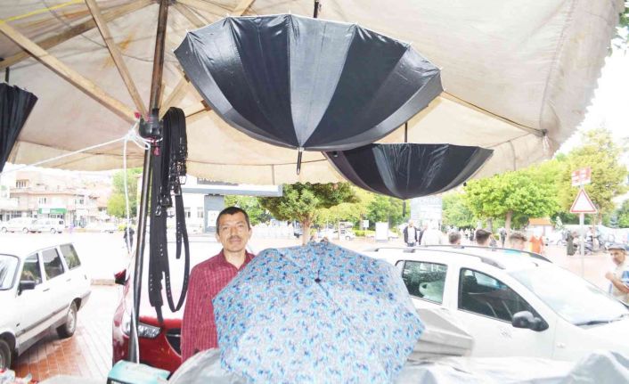 Kütahya’nın Tavşanlı ilçesinde yaklaşık 10 gündür yağan yağmur aralıklar ile devam ederken, yağmurun yağması şemsiyecilerin işine yaradı.