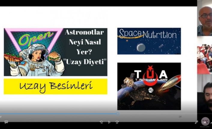 Dr. Öğr. Üyesi Tekiner, uzayda beslenme, lezzet algısı ve bunun etkenleri, astronotların diyeti, uzayda beslenme konusundaki güncel durum, çalışmalar ve gelişmeler hakkında bilgi verdi ve öğrencilerin sorularını yanıtladı.