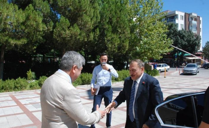 Gediz Belediye Başkanı Muharrem Akçadurak, Orman ve Su İşleri Eski Bakanı Afyonkarahisar Milletvekili Prof. Dr. Veysel Eroğlu’nu Belediye hizmet binası girişinde karşıladı.