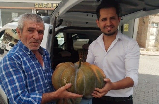 Yerli tohumla dev kabaklar yetiştiriyor