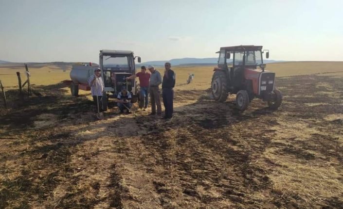 Kütahya’nın Altıntaş ilçesine bağlı Üçhüyük köyünde meydana gelen yangında bir dekar meyve bahçesi zarar gördü.