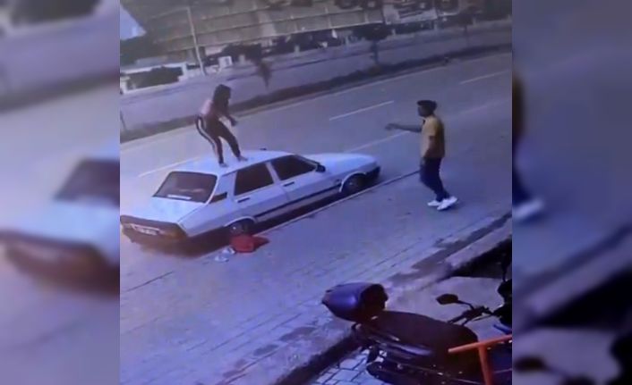 Adana’da bir kadın otomobilin tavanına çıkıp dans etti