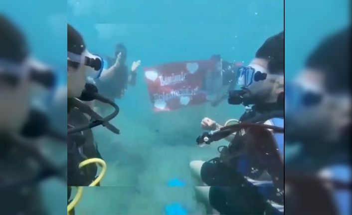 Antalya’da bir genç, denizin 21 metre derinliğinde kız arkadaşına romantik bir evlilik teklifinde bulunarak sürpriz yaptı.