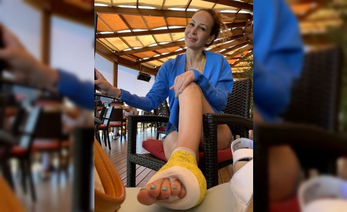 Manken Alexandra Ceylan, yavru köpeği otomobilin altından kurtarırken ayağını kırdı.