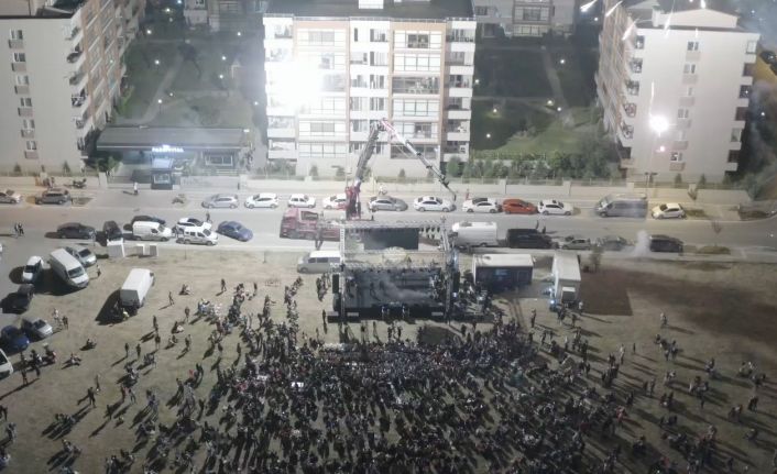 Bursa’da yüzlerce kişinin karşısına çıkan sevilen sanatçı Mehmet Çevik, sahneye 40 metre yüksekten vinç ile indi. Nilüfer ilçesinde düzenlenen halk konserine yüzlerce vatandaş akın etti. Sahneye çıkarken sevenlerine sürpriz yapmak isteyen Çevik, kafes içerisinde 40 metre yüksekten sahneye indi. İzleyenlerin yüreği ağzına gelirken, Çevik ise büyük tehlike atlattı. Havai fişekler geceye renk katarken, kıvılcımları ünlü sanatçının koluna geldi. Korkulan olmazken, ünlü sanatçı ilerleyen saatlere kadar alanı dolduran vatandaşlara şarkılarıyla unutulmaz bir gece yaşattı.