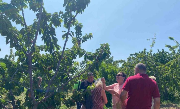 Kirazlı’da köylü kadınların geleneksel kıyafetlerini giyen Perihan Savaş, bahçede üreticilerle birlikte kiraz topladı, meyveleri tek tek inceledi. Samimi tavırlarıyla ilgi gören sanatçı, köy kahvesinde vatandaşlarla çay içip sohbet etti. Hayranlarının fotoğraf isteklerini de geri çevirmeyen Savaş, bol bol hatıra pozları verdi.