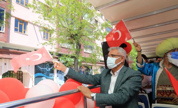 23 Nisan Ulusal Egemenlik ve Çocuk Bayramı için özel bir programa imza atan Malatya’nın Battalgazi Belediyesi, rengarenk süslediği üstü açık tur otobüsüyle, korona virüs tedbirleri kapsamında bu yılda evlerinden çıkamayan çocukların bayramını kutladı.