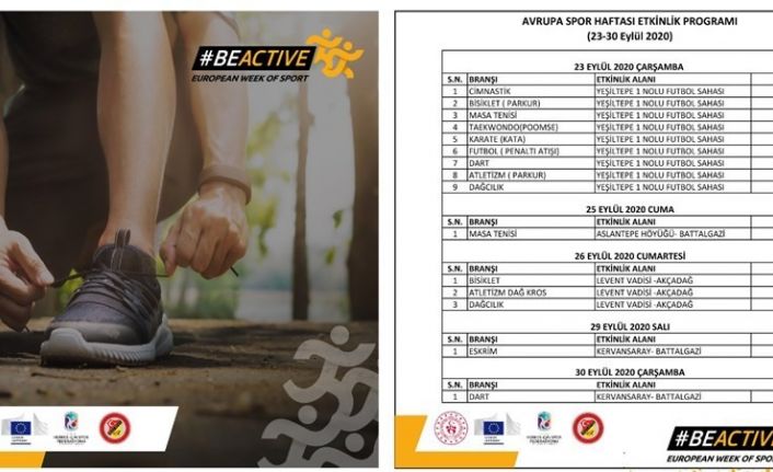 Avrupa Spor Haftası etkinlikleri Malatya’da dolu dolu müsabakalarla geçecek. Covid-19 kuralları çerçevesinde 23-30 Eylül tarihleri arasında düzenlenecek olan Avrupa Spor Haftası etkinlikleri ile ilgili hazırlıklar tamamlandı.
