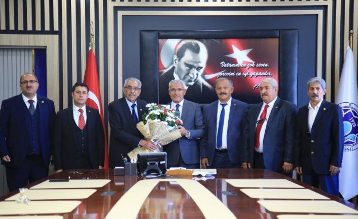 Türkiye Muhtarlar Derneği Malatya Şube Başkanı Mustafa Eren, Battalgazi Muhtarlar Derneği Başkanı Abdulvahap Ortaç, Malatya Kayısı Kent Muhtarlar Derneği Başkanı Alaaddin Aktaş, Mahalle ve Köy Muhtarları Derneği Başkanı Aliseydi Yücekaya, Malatya Muhtarlar Derneği Başkanı Şahin Demirci, Yeşilyurt Muhtarlar Derneği Başkanı Salman Şahbaz ve beraberindeki bazı muhtarlar ile birlikte 19 Ekim Muhtarlar Günü dolayısıyla Battalgazi Belediye Başkanı Osman Güder’i ziyaret etti. Tüm muhtarların bu özel gününü kutlayan Başkan Güder, “İyi ki varsınız, iyi ki geldiniz. Gününüz kutlu olsun. Gönüllerimiz bir. Ülkemizin demokrasi mücadelesine katkı vermeye beraber devam ediyoruz. Muhtarlarımız bizim baş tacımız” diyerek, tüm muhtarlara görevlerinde başarılar diledi.