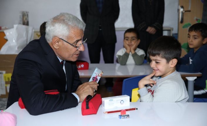 Malatya’nın Battalgazi Belediye Başkanı Osman Güder, okul ziyaretinde, Orduzu’daki ilkokul öğrencileri ile bir araya gelerek onlara diş bakım seti hediye etti.