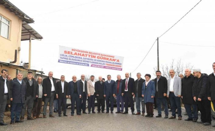 Ziyarette konuşan Çığlık Mahallesi Muhtarı Doğan Dağdeviren, “Başkanım yaptığınız hizmetlerde dolayı sizlere çok teşekkür ediyoruz. Mahallemize 3-4 kilometrelik asfalt yolu yaptınız. Ayrıca mahallemizde çevre düzenlemesi yapan ekibinize teşekkür etmek istiyorum” dedi. Çömlekoba Mahallesi Muhtarı Gaffar Yıldırım ise yapılan hizmetlerden dolayı teşekkür ederek, “Belediye başkanlarıma ve ilgili kurumlara yaptığı hizmetlerden dolayı teşekkür ederim” şeklinde konuştu. Şatırobası Mahallesi Muhtarı Abuzer Çelik de Büyükşehir Belediye Başkanı Selahattin Gürkan’a “Yaptığınız yatırımlardan dolayı çok teşekkür ederiz“ dedi.