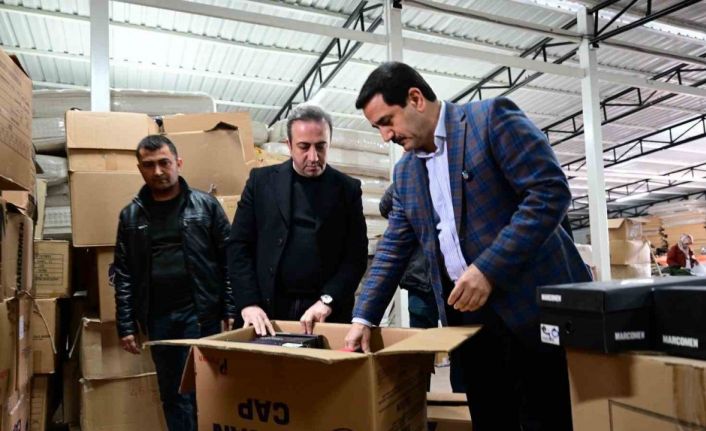 Başkan Taşkın yardım malzemeleri tasnifine eşlik etti
