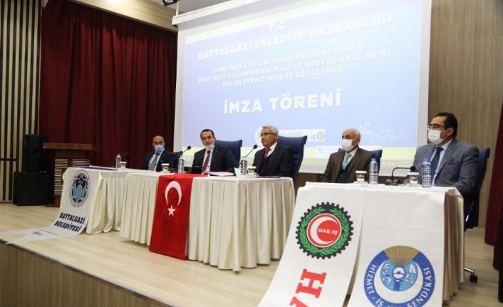 Battalgazi Belediyesi ve HAK-İŞ Konfederasyonuna bağlı Hizmet-İş sendikası arasında Toplu İş Sözleşmesi gerçekleştirildi. Toplu iş sözleşmesi Battalgazi Belediyesi Konferans Salonu’nda düzenlenen imza töreni ile Battalgazi Belediye Başkanı Osman Güder ve Hak-İş ve Hizmet-İş Sendikası Malatya Şube Başkanı Bünyamin Geleri arasında pandemi kuralları dikkate alınarak imzalandı.