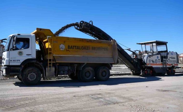 Battalgazi Belediyesi, kaldırılan Bağcılar Konteyner Kent alanındaki asfaltı freze çalışmasıyla sökerek kırsal mahalle yollarında kullanıyor.