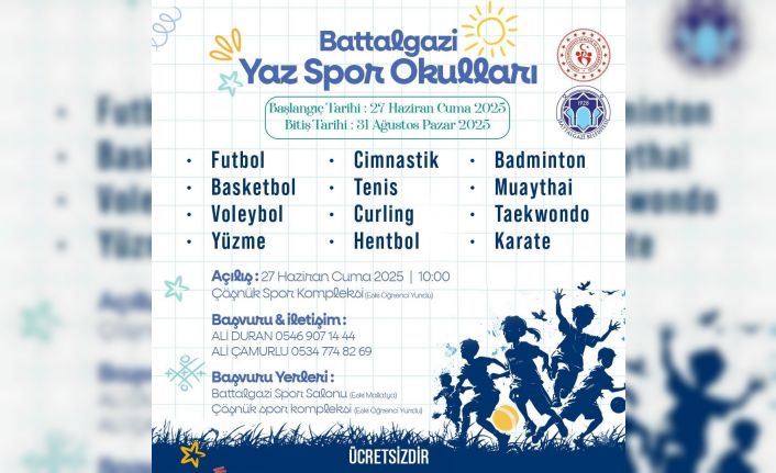 Çocukların bedensel ve ruhsal gelişimini önceleyen projelere öncülük eden Battalgazi Belediyesi, bu yaz da çocukları spora teşvik edecek anlamlı bir adım atıyor. Yaz spor okulları ile çocukların fiziksel gelişimlerinin yanı sıra sosyal yönlerini de güçlendirmeleri hedefleniyor. Düzenlenecek sportif etkinliklerle öğrenciler, takım ruhu, disiplin ve dayanışma gibi değerleri pekiştirme imkânı bulacak.