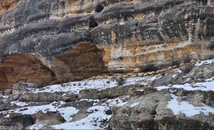 Malatya’da etkili olan yoğun kar sonrası üreticiler, hayvanlarını bin 600 rakımdaki kayalıklara çıkardı.