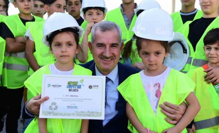 Yeşilyurt Belediye Başkanı Mehmet Çınar, Yeşilyurt Belediyesi İklim Değişikliği ve Sıfır Atık Müdürlüğü tarafından düzenlenen ‘Sıfır Atık ve Çevre Bilinci’ eğitimlerine katılan öğrencilere Ambalaj Atığı Toplama Ayırma Tesisinde düzenlenen törenle ‘Çevre Müfettişi Belgesi’ takdim etti.