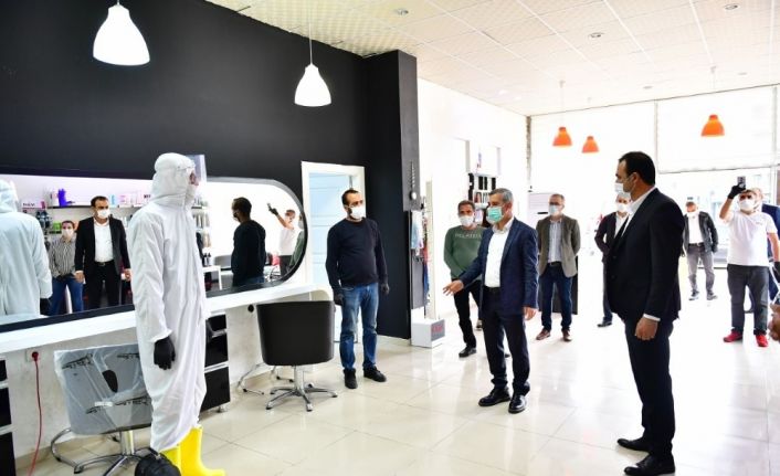 Yeşilyurt Belediye Başkanı Mehmet Çınar, beraberinde Malatya Berberler, Berberler ve Kuaförler Odası Başkanı Ramazan Toptaş ile birlikte işyerlerinde devam eden dezenfektan çalışmalarını yerinde takip ederek, esnaflarla sohbet etti.