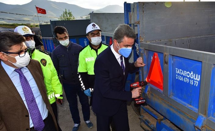 VALİ BARUŞ, KARAYOLUNDA BÜYÜK TEHLİKE OLUŞTURAN REFLEKTÖRSÜZ RÖMORKLARA REFLEKTÖR TAKTI