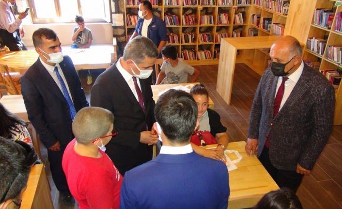 Vali Baruş konuşmasından sonra kütüphanenin açılışı gerçekleştirdi. Baruş, kütüphanenin ilk kitabını okudu. Baruş, öğrencilere kitaplar dağıttı ve kitapları imzaladı.