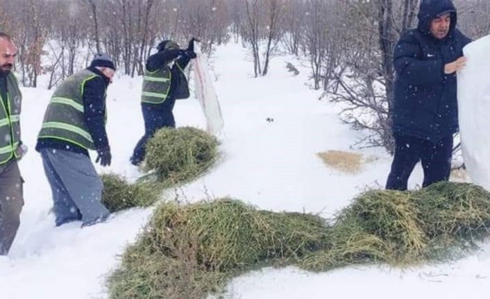 Malatya’nın Doğanşehir ilçesinde ve Doğa Koruma Milli Parklar görevlileri ve avcılar yoğun kar yağışı nedeniyle yiyecek bulmakta zorluk çeken yaban hayvanlarını unutmadı.