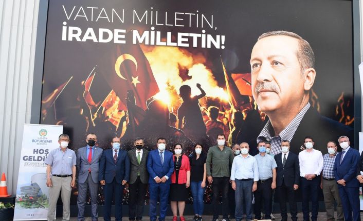 Sebze fidelerinin İlçe Tarım Müdürlüklerine teslim edilmesi için Büyükşehir Belediyesi önünde bir program düzenlendi.