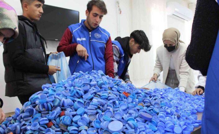 Malatya’da gençler, engellilere yardım için mavi kapak toplama kampanyası başlattı.