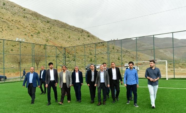 Yeşilyurt Belediye Başkanı Mehmet Çınar, beraberinde AK Parti Yeşilyurt İlçe Gençlik Kolları Başkanı Salih Tav, Türk Kızılay Şube Başkanı Dr. Harun Kurt, Yeşilyurt belediye meclis üyeleri ve mahalle muhtarlarıyla birlikte Porga bölgesine kazandırılan halı sahayı inceledi.