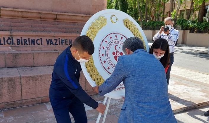 Atatürk Anıtı’nın önünde gerçekleşen çelenk sunma töreni, saygı duruşu ve İstiklal Marşının okunmasının ardından anıta çelenk sunumu ile devam etti. Daha sonra Malatya Gençlik ve Spor İl Müdürü Ebu Bekir Kayhan bir konuşma yaptı. Kayhan, ‘’Geleceğimizin teminatı olan sevgili gençler. Bilindiği gibi her yıl 15-21 Mayıs tarihleri arasında ülkemizde büyük bir coşkuyla kutlanan Gençlik Haftası için bu yıl sosyal mesafe kurallarına uygun bir kutlama programı hazırladık. Malatya Valiliği koordinesinde Gençlik ve Spor İl Müdürlüğünün organize edeceği Gençlik Haftası Programı, Atatürk anıtına çelenk sunumu ile başlayacak olup hafta boyunca yapılacak çeşitli sosyal ve sportif faaliyetlerle devam edecektir” ifadelerini kullandı.