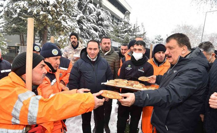 Malatya Büyükşehir Belediye Başkanı Selahattin Gürkan, Malatya’ya karın yağdığı ilk andan itibaren sahada çalışmalarını 7-24 esasına göre sürdüren Büyükşehir Belediye ekiplerini ziyaret ederek, personellere çeşitli ikramlarda bulundu.
