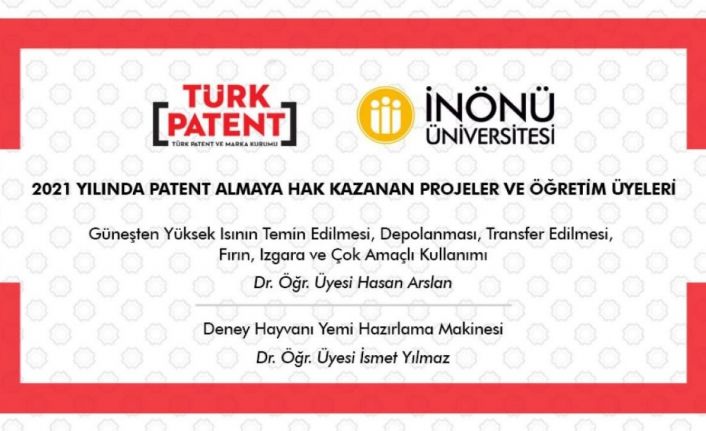 İnönü Üniversitesi Eczacılık Fakültesi öğretim üyesi Dr. Öğr. Üyesi İsmet Yılmaz ve öğretim üyesi Dr. Öğr. Üyesi Hasan Arslan’ın yaptıkları bilimsel araştırma projelerine 2021 yılı içerisinde Türk Patent ve Marka Kurumu tarafından Patent Belgesi verildi.