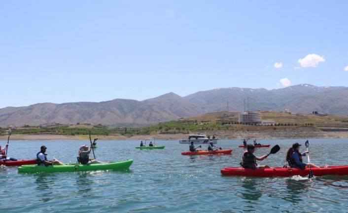 Malatya’da, Jandarma ve üniversite öğrenciler tarafından 19 Mayıs’ın yıl dönümü nedeniyle gölde bot gösterisi yapıldı.