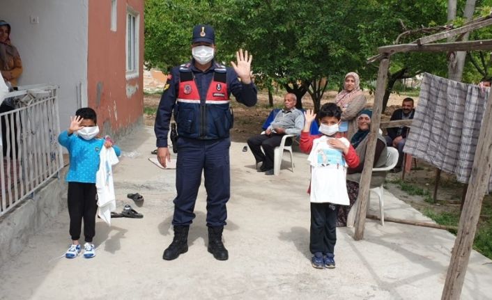 Malatya’nın Yeşilyurt ilçesinde Jandarma Trafik Timleri, Karayolu Güvenliği ve Trafik Haftası etkinlikleri kapsamında, korona virüs salgını nedeniyle sokağa çıkması yasak olan çocukları evlerinde ziyaret edip, çeşitli hediyeler verdi.