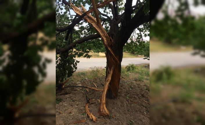 Malatya’nın Darende İlçesi’nde kayısı bahçesine düşen yıldırım bazı ağaçlara zarar verdi.