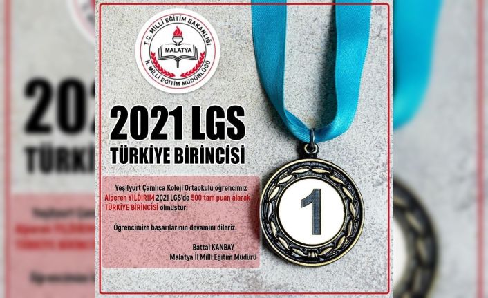 Malatya Çamlıca Koleji ortaokulu öğrencisi Alperen Yıldırım tüm soruları doğru cevaplayarak 500 tam puan aldı ve Türkiye birincileri arasında yer aldı.