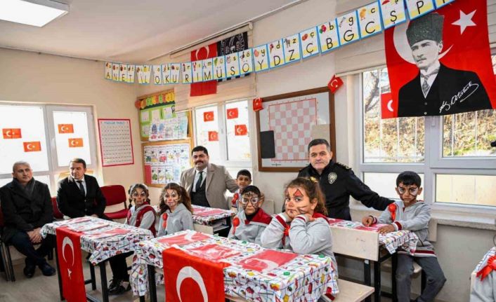 Malatya İl Emniyet Müdürü Kayhan Ay, DHMİ Malatya Havalimanı Müdürü Serdar Akyüz, İl Emniyet Müdür Yardımcısı Deniz Yılmaz ve emniyet personeli, Akçadağ ilçesinde bulunan Aksaray Şehit Akgün İlkokulu öğrencilerini ziyaret etti.