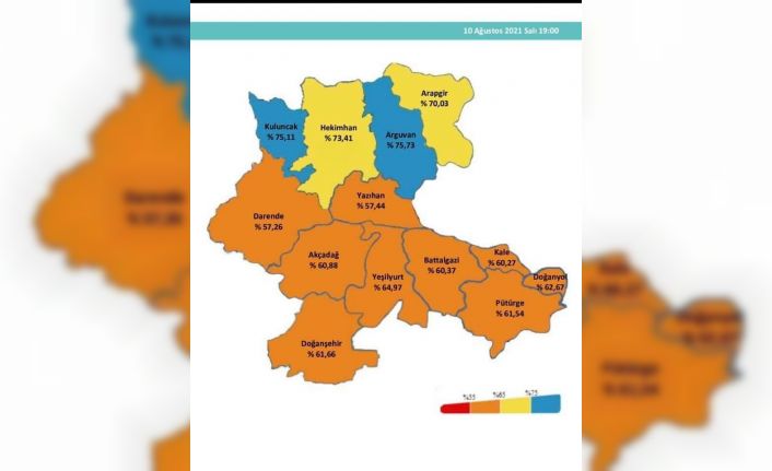 Yeni tip korona virüs (Covid-19) pandemisindeki aşılamada Malatya’nın Arguvan ve Kuluncak ilçeleri orta riskli (sarı) kategoriden düşük riskli (mavi) kategoriye geçti.