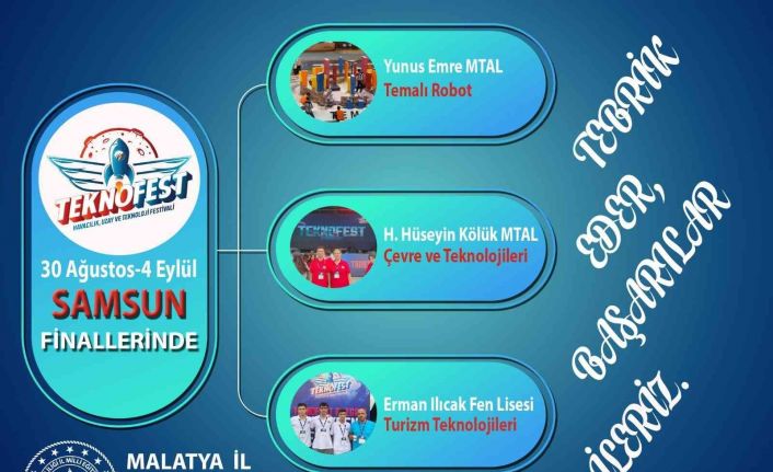 Malatya’dan 3 takımın, 30 Ağustos - 4 Eylül tarihleri arasında Samsun’da yapılacak Teknofest finallerinde başarılı dönmeleri bekleniyor.